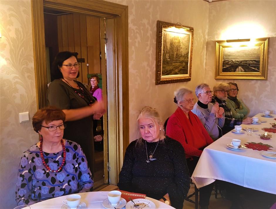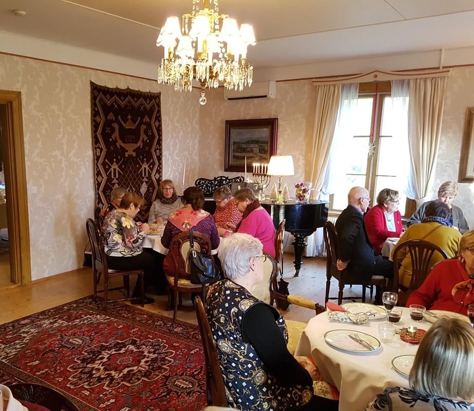 Ruokailun päätteeksi Kartanon emäntä Leila Ylitalo johdatteli meidät vaiherikkaasti kartanon historiaan ja nykypäivään.