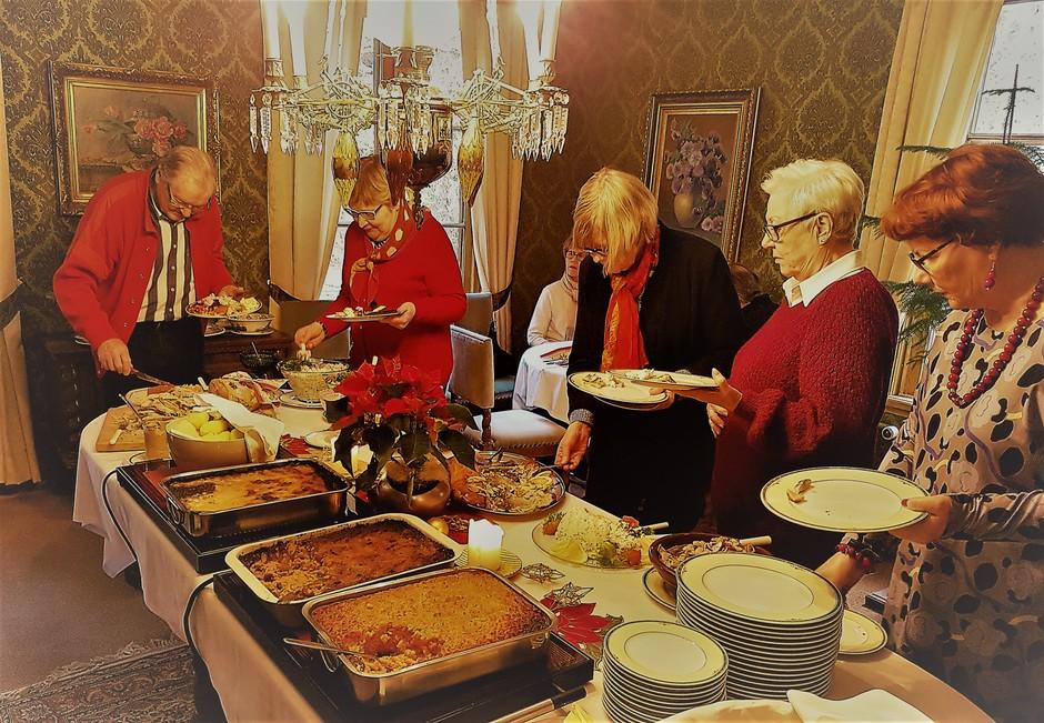 Täällä olikin vuorossa retken päätapahtuma, eli herkullinen joululounas Joulumuorin pöydästä. Myös oli mahdollisuus tehdä ostoksia kartanon joulupuodista.