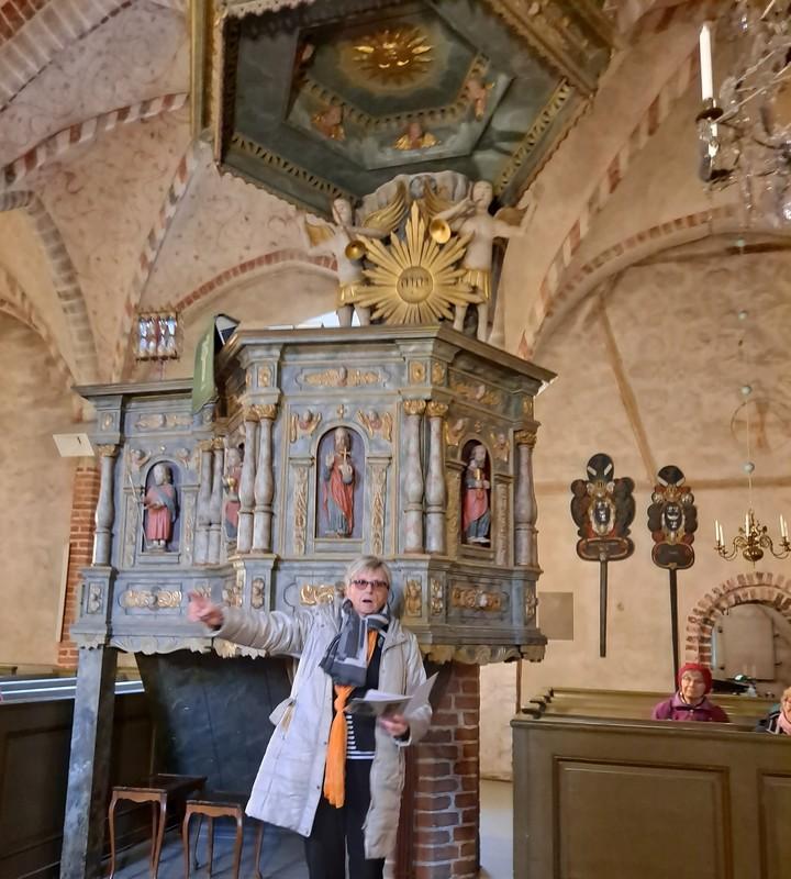 Täältä matkamme jatkui Pernajan kirkolle, jossa tutustuimme kirkon ympäristöön, kirkkoon ja pieneen Veteraanimuseoon. Mikael Agricolahan oli syntynyt Pernajassa, joten hän on näkyvästi esillä mm. muistomerkkinä krkkopuistossa.
