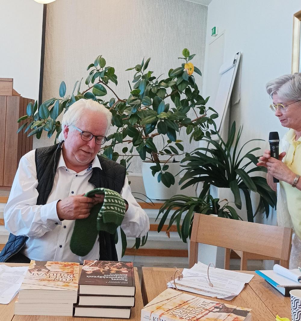 Jukka Kekkonen oli tuonut kirjoittamiaan kirjoja jäsenille myyntiin ja ne tekivät hyvin kauppansa. Tarjolla olivat edullisesti teokset Kun aseet puhuvat ja Suuret oikeudenkäynnit ihmiskunnan historiassa. Kekkonen kertoi jättäneensä juuri uusimman kirjansa kustantajalle. Odotettavissa on siis varmasti tutkittua tietoa ja painavaa asiaa.