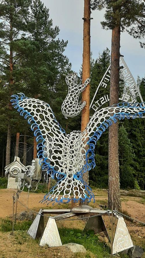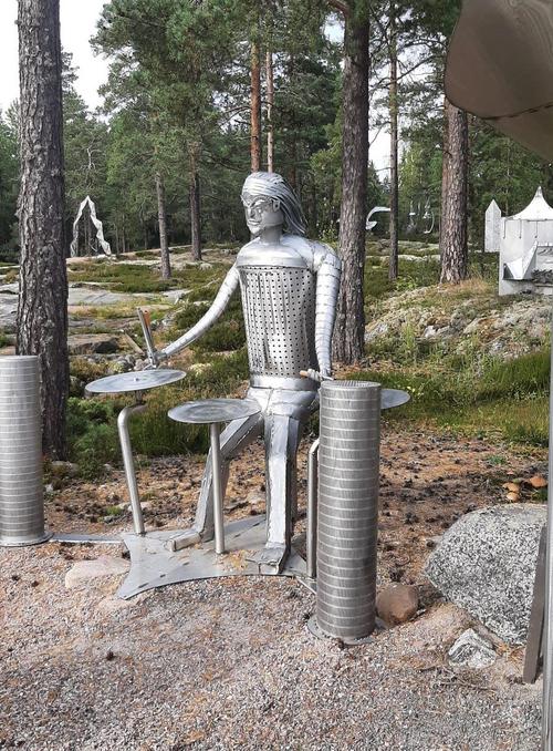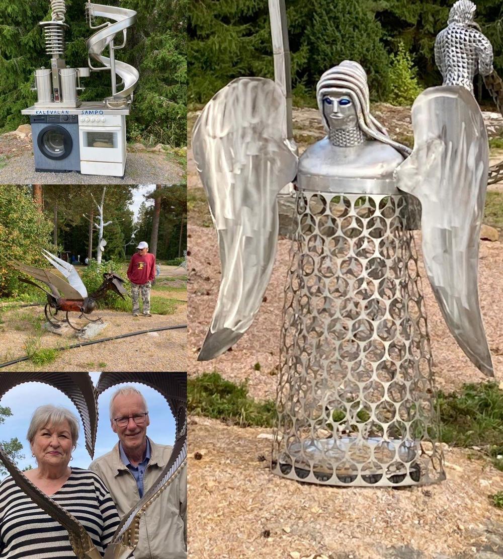 Puistossa on enkeleitten lisäksi elämiä, ihmisiä, historian hahmoja ja henkilöitä. Iitti oli itse esittelemässä meille luomuksiaan. Ei riittänyt, että hän sanallisesti kertoi niistä. Useimpiin liittyi tekijän mukaan myös jokin laulu tai iskelmä ja niitä saimme myös kuunnella ja ihastella."
