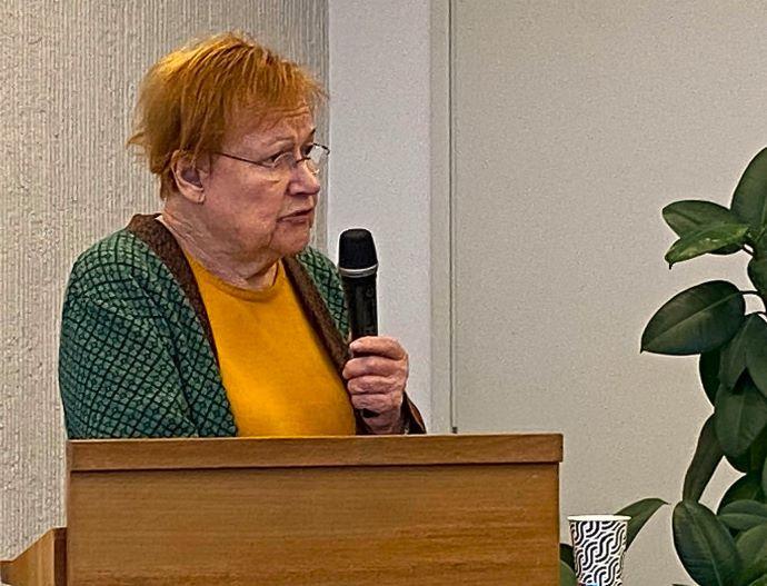 Tammikuun jäsentapaamiset seurakuntasalissa alkoivat yleisömenestyksellä, sillä reilut sata yhdistyksen jäsentä oli tullut kuuntelemaan kevätkauden ensimmäistä vierasta, presidentti Tarja Halosta. Hyväntuulinen Halonen oli valinnut aiheekseen yhteisöllisyys ja yhdessä tekeminen. Halonen totesi, että yhteisöllisyys tarkoittaa sitä, että pidämme toisistamme huolta, mutta yhteisö tarjoaa paikan olla oma itsensä. Hän sanoi, että tämä sukupolvi rakensi yhteiskunnan, joka pitää huolta. Pohjoismainen hyvinvointivaltio rakentui tällä periaatteelle, mutta nyt ollaan valumassa vain jollakin tavalla toimivaan järjestelmään. Suomessa kaupungistuminen on nuorta ja sen pelättiin tuovan paheita. Hän puhui myös vanhusten hoidosta ja korosti, että ihmisarvon kunnioittamisen pitää olla mukana yhteisöllisyydessä, ei sen mikä tulee halvimmaksi, sillä hoitoon sisältyy aina valtaa. Muistisairautta ei ole aiemmin osattu ottaa huomioon. Halonen muistutti, ettei äänestyksiin ei ole yläikärajaa ja hän kannusti meitä pysymään aktiivisina.